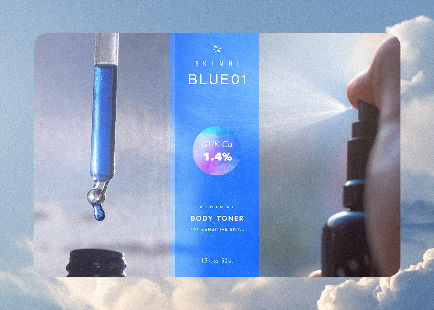BLUE01 is a silky, all-over body toner and skin serum made to deeply hydrate and revitalize skin and hair with just 3 ingredients.